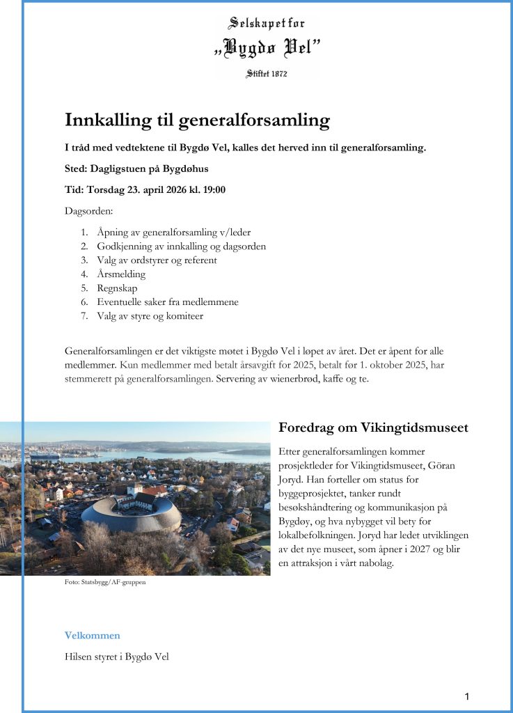 Sykkelveien et pedaltråkk nærmereav Hans Magnus Borgejuni 20, 2025 Byggesaker på Bygdøyav Hans Magnus Borgemai 26, 2025 Velkommen til pentanque på Huk søndag 25 maiav Hans Magnus Borgemai 20, 2025 Generalforsamling i Bygdø Vel er avholdt.av Hans Magnus Borgemai 11, 2025 NB Nå er det lagt til noter i regnskapet for 2024av sjefapril 28, 2025